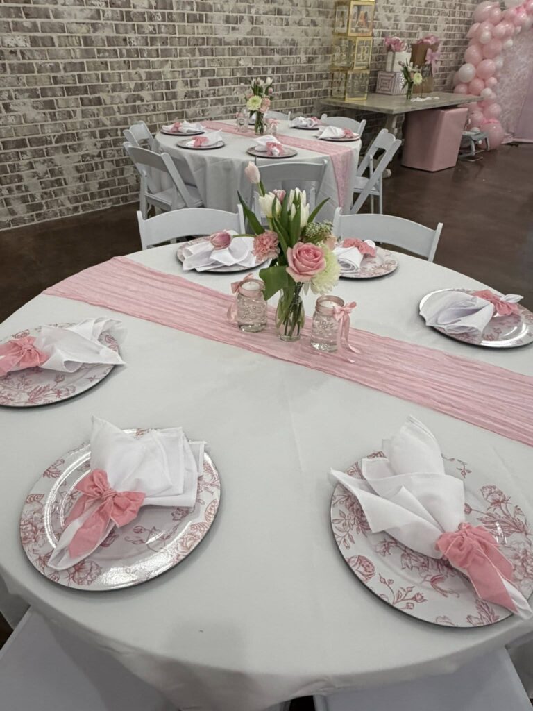 We believe that a great baby shower doesn’t require a mile-long checklist. That’s why all of our small event packages include the basics you need to host comfortably — no need to rent tables or chairs or rush to get the space ready. You’ll have access to a full kitchen with refrigeration, prep surfaces, and ice. We handle the setup of all tables and chairs before you arrive, so all you have to do is decorate and enjoy. Our venue also includes indoor restrooms, ADA accessibility, and convenient parking — everything you need to keep guests of all ages comfortable.